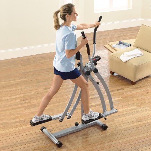 Our elliptical exercise machine shapes you up then folds up! Our affordable elliptical machine is ideal for fitness beginners and seasoned athletes alike! This innovative elliptical exercise equipment delivers a serious cardio workout for full body toning; and it folds nearly flat for easy storage. Order the Fold-A-Way Air Walker, our elliptical exercise machine, and stride toward better health! Elliptical exercise equipment won t jar your body. Running can have a jarring impact on your legs, spine, feet, and knees. But an elliptical exercise machine delivers a comfortable, no-impact workout. And our affordable elliptical machine, the Air Walker, does it in a smooth and fun fashion. Our foldaway elliptical exercise machine is easy to use, easier to store. Sensors on the handlebars measure heart rate. Steel frames on our elliptical exercise equipment ensure a stable workout. LCD monitor shows calories burned, time, distance, steps and heart rate. Ultra-smooth action makes this affordable elliptical machine a pleasure to use. Uses two AA batteries (not included). Elliptical exercise equipment is the hottest gym trend. Lose inches. Keep the space. Now you can have the kind of sturdy and effective equipment you find at the gym in the convenience of your home. Order your Fold-A-Way Air Walker, our elliptical exercise machine, and shed the pounds without spreading the clutter!...Read More product detail