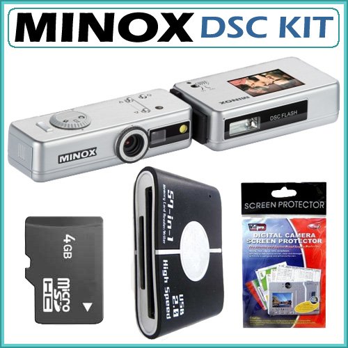 | Editorial Reviews: Product Description The new generation of the legendary MINOX Spy Camera is designed in a stylish, highly desirable metal finish and is equipped with a new generation sensor providing a full 5.1 Megapixels of output for very impressive, high resolution images. Moreover the new DSC Silver provides the ability to focus on subjects as close as 23.6 inches. This outstanding masterpiece in minimalist design and photo technology packs remarkable features into dimensions of just 3.4 x 1.14 x 0.78 inches. The bright viewfinder allows spontaneous, fast shots, even in critical light conditions. In total, these features make the new DSC a very sound optical notebook. The system has an additional external flash that can be docked on to the side of the DSC. And to provide the user with the accustomed convenience of a display for viewing video and image results, the flash has an integrated 1.5 inch TFT LCD monitor. The image data can be saved on micro SD memory cards of up to 16 GB, in addition to using the internal memory. KIT INCLUDES: * 4GB microSD MEMORY CARD. * MULTI-MEMORY CARD READER. * LCD SCREEN PROTECTORS. | |||||||||||||